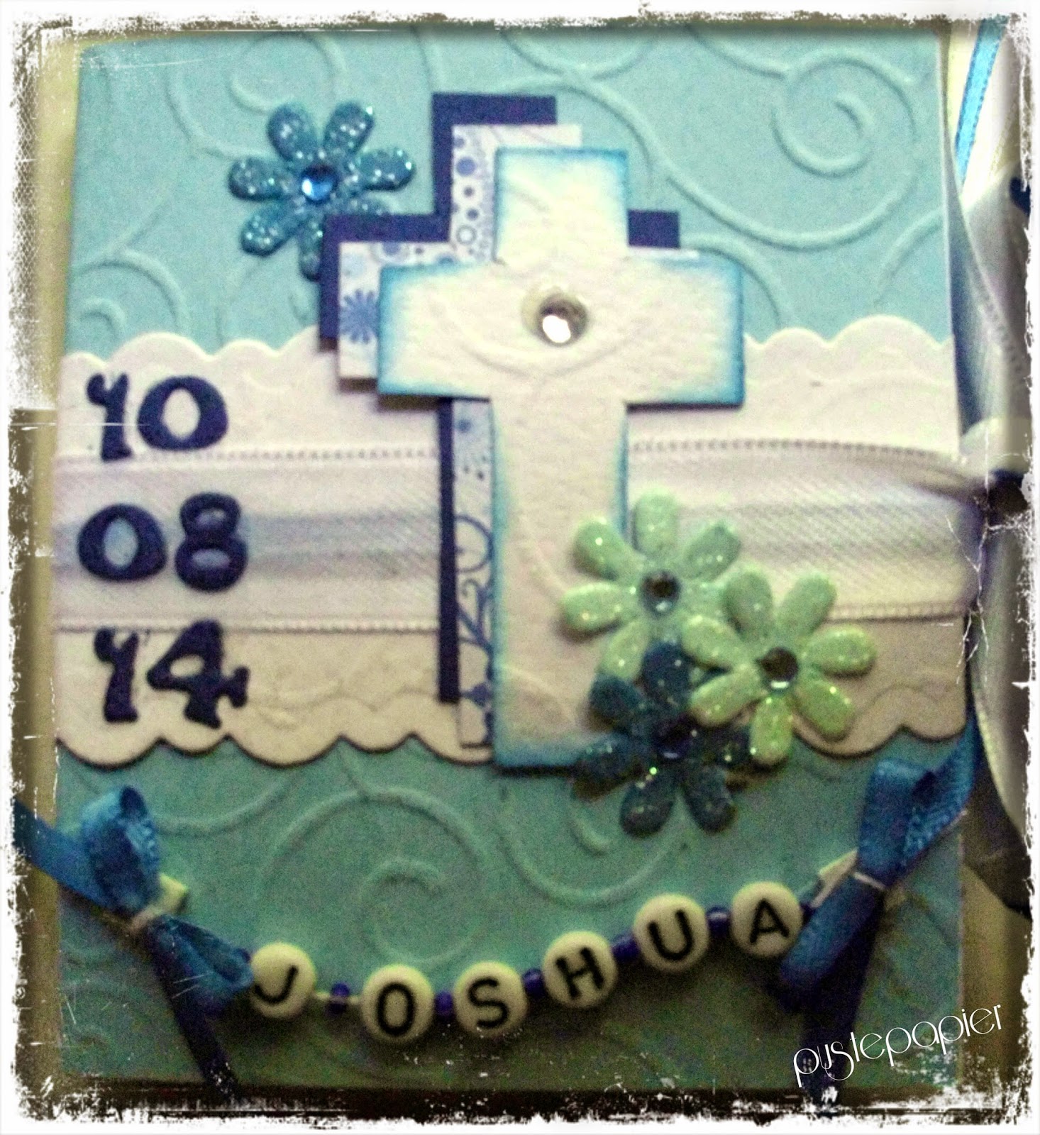 Auf der unteren Seite ist Platz für die Glückwünsche, die Ecken sind mit Stempel von my paper world bestempelt und dazwischen habe ich noch Glitzersteinchen gesetzt.